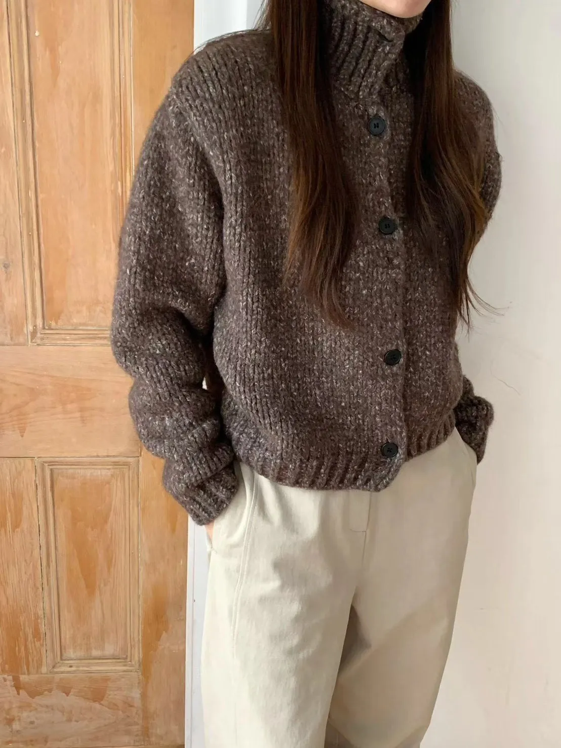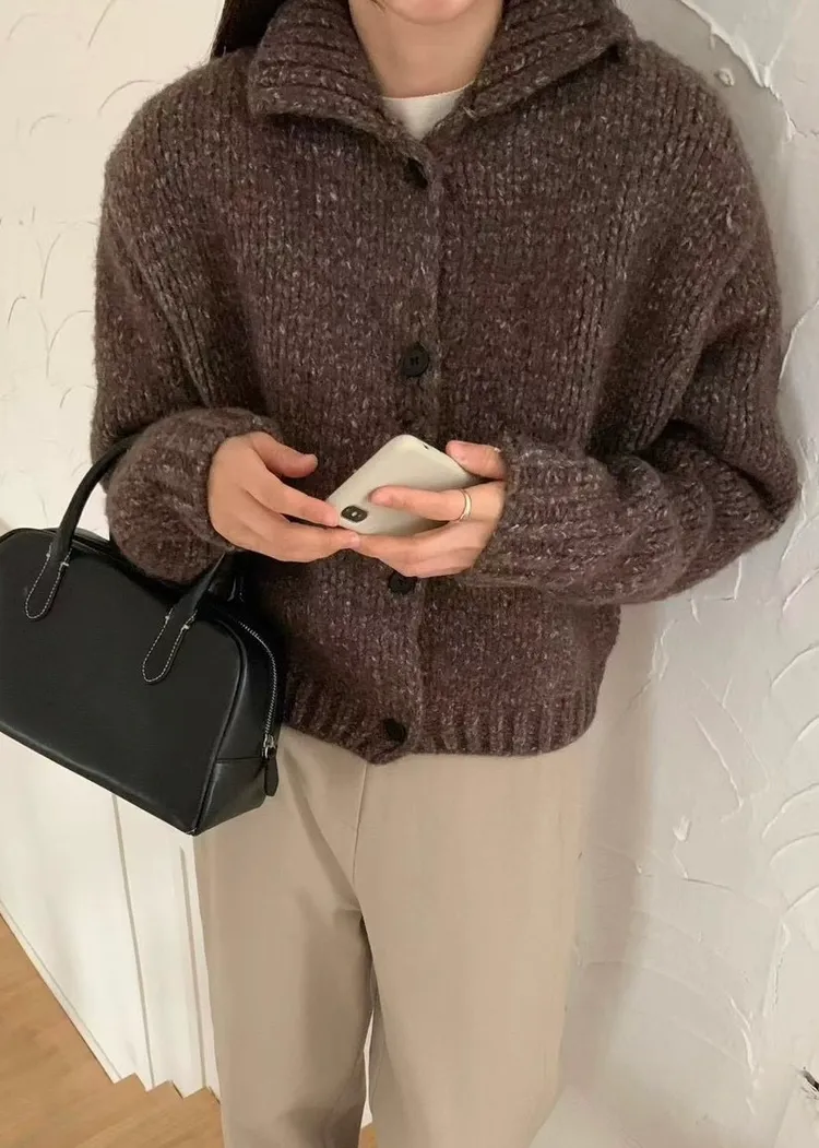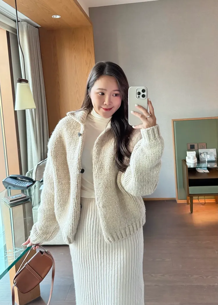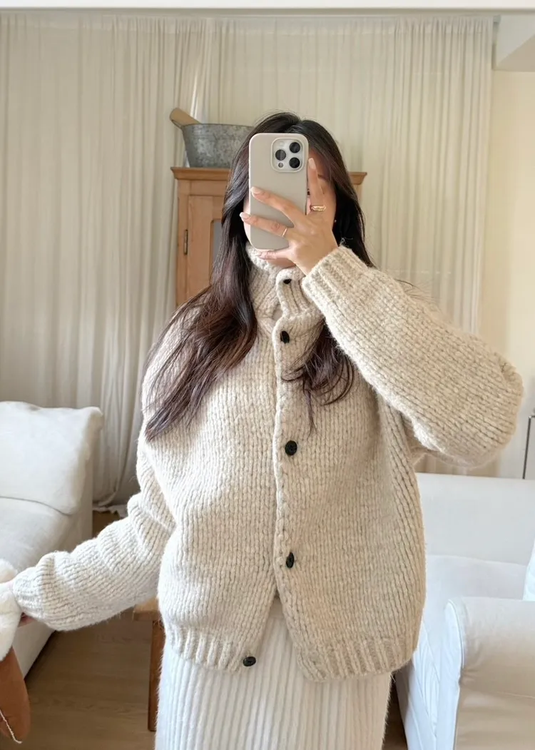 J21重磅粗鉤針保暖立領外套-2色