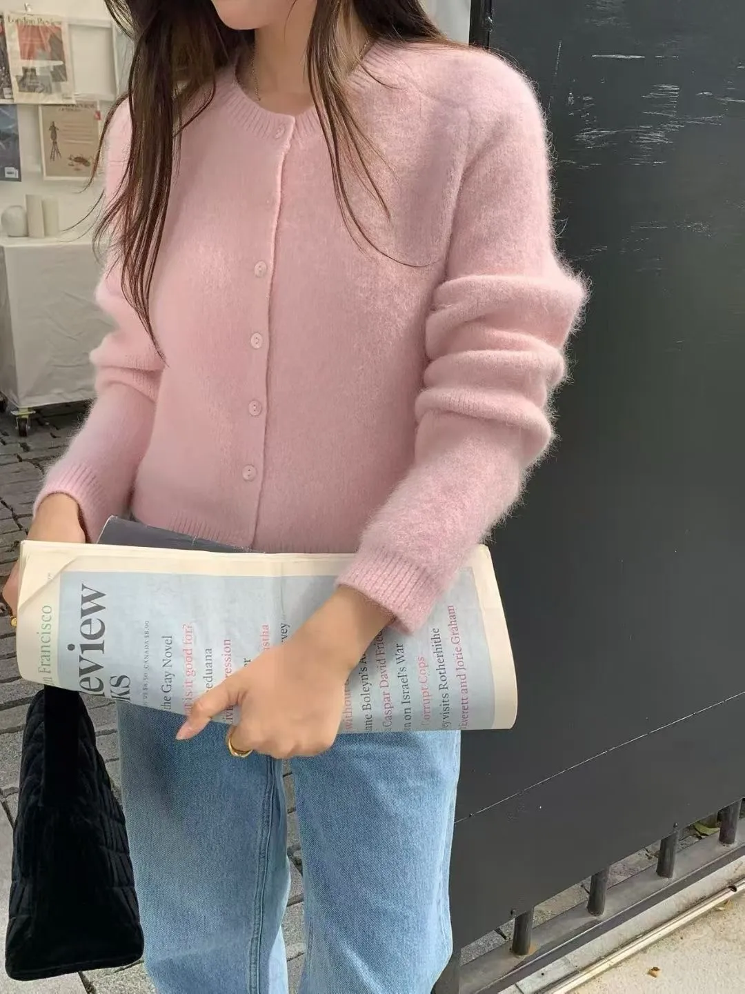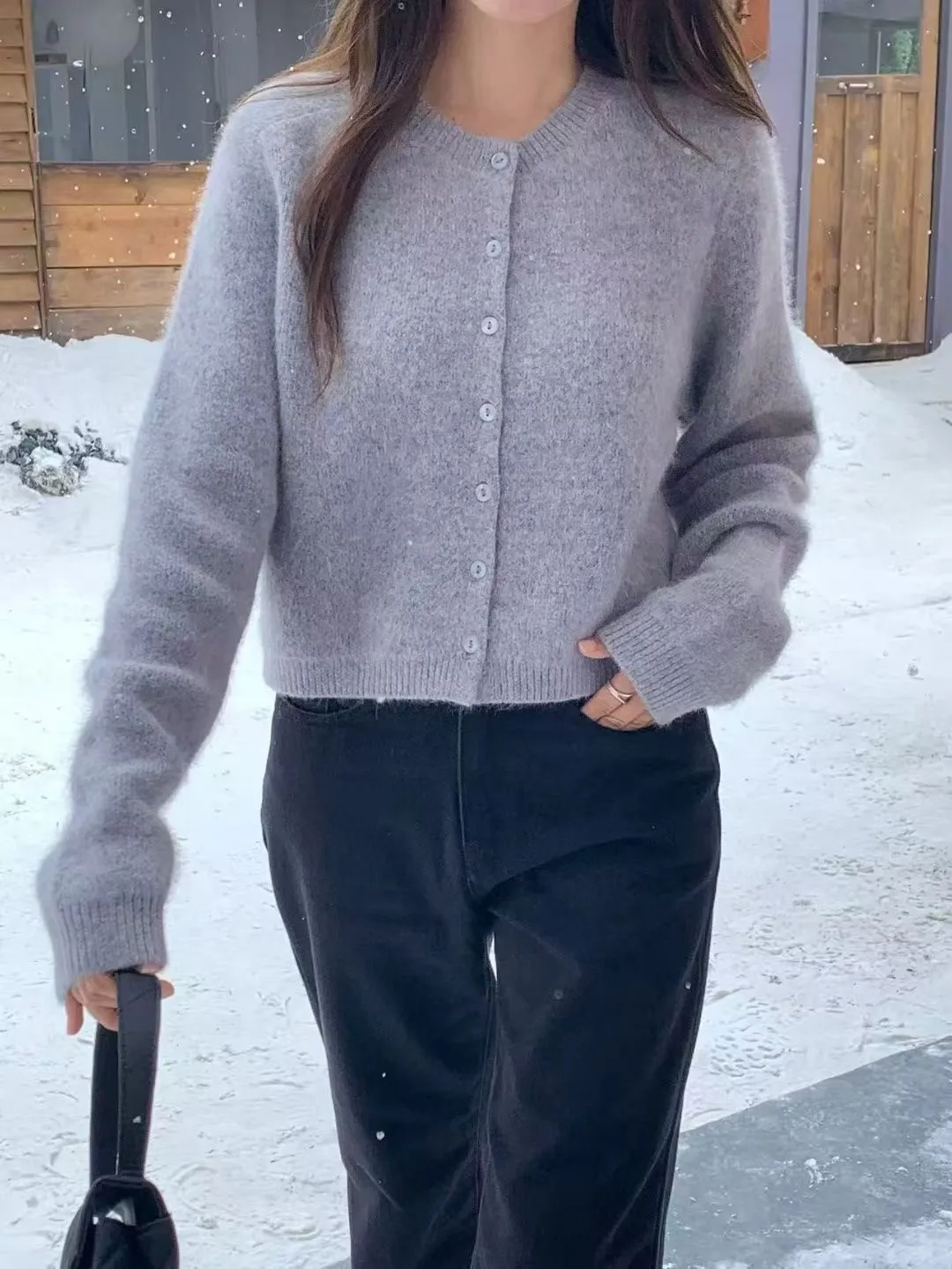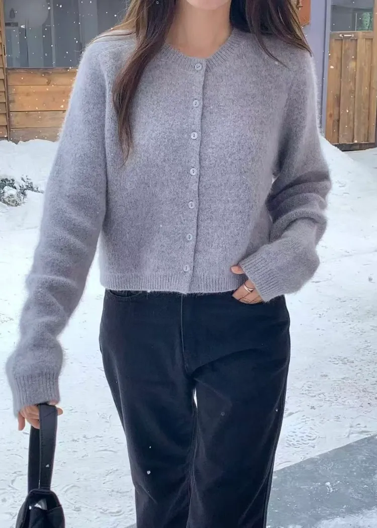 J29包色微短版柔軟毛料開襟衫-4色