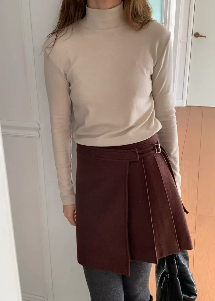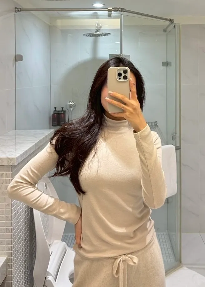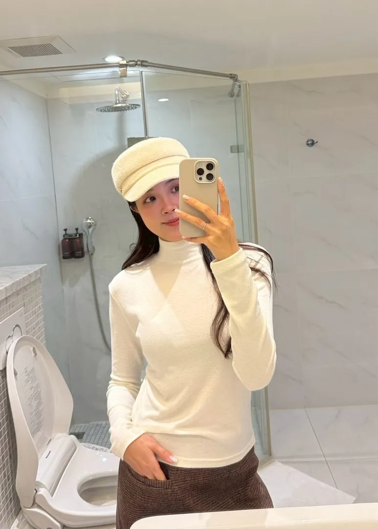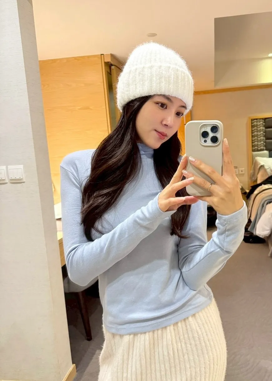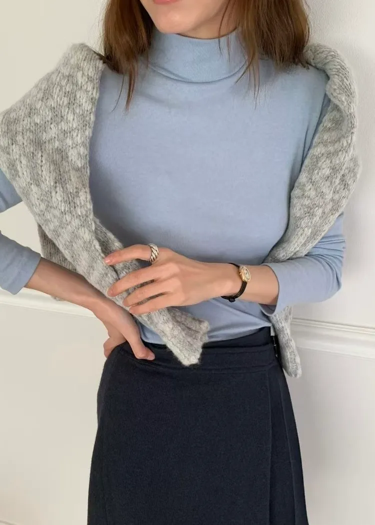 J34包色!彈力羊毛混棉立領長袖上衣-2色