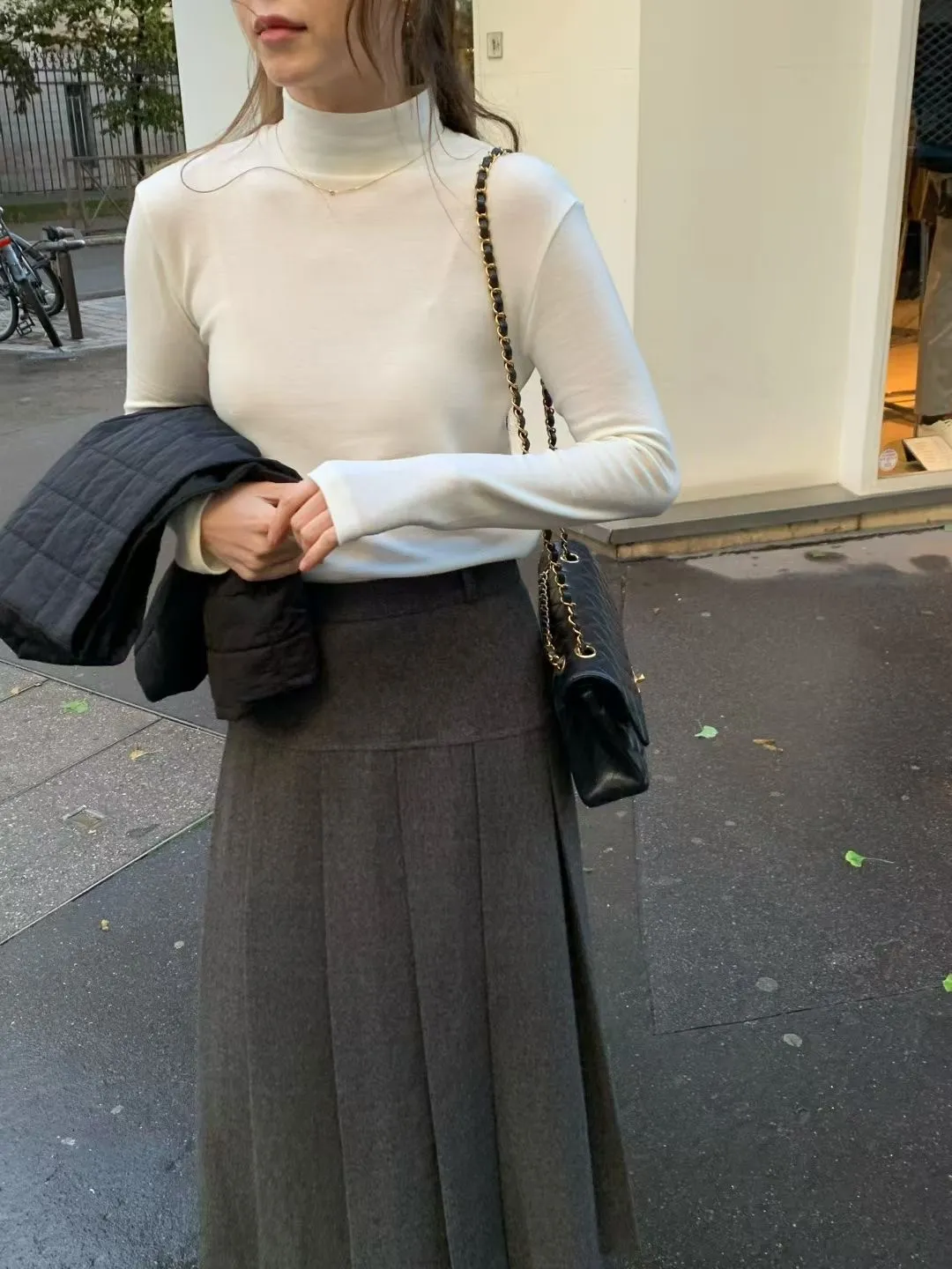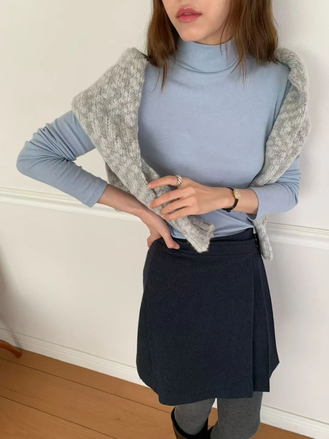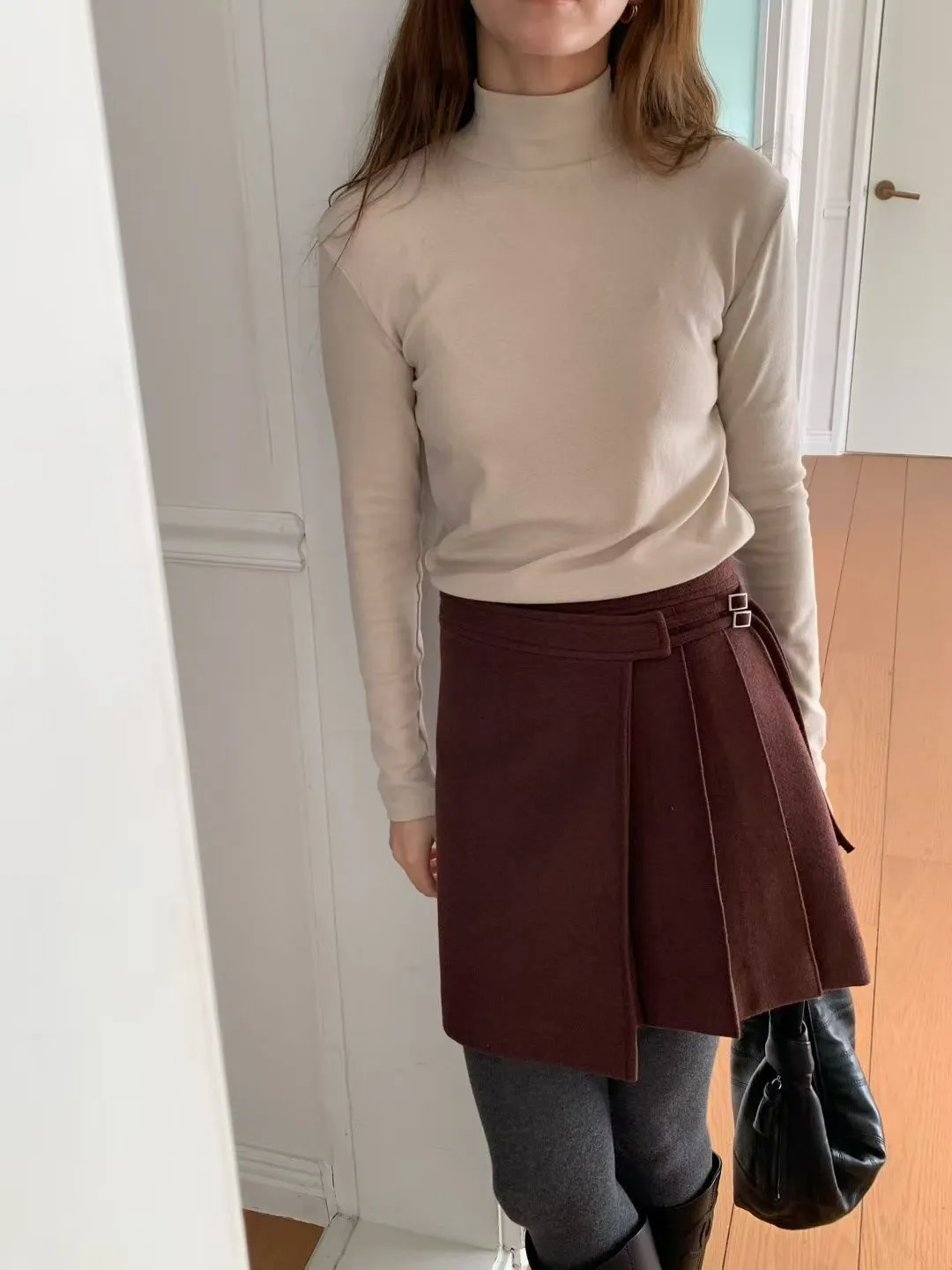 J34包色!彈力羊毛混棉立領長袖上衣-2色